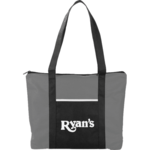 The Timeline Non-Woven Zipper Convention Tote is reusable tote that's great for tradeshows and conventions and features a zippered main compartment with a front pocket and double 26 inch handles.