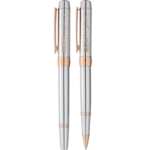 Exclusive Cutter & BuckĀ® design. This set features shiny chrome upper and bottom barrel with gold accents. Subtle branding. Includes premium black ink cartridges. Includes 2-piece Cutter & BuckĀ® gift box.