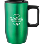 The Terra 14oz Travel Mug features double-wall stainless steel construction and a push-on lid with a twist drink opening. Hand wash only and follow any included care guidelines.