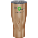 Do not miss the most trendy tumbler of the year. Durable, double-wall stainless steel vacuum construction with copper insulation, which allows your beverage to stay cold for 24 hours and at least 8 hours for hot beverages. The construction also prevents condensation on the outside of the tumbler. Push-on two piece lid with Tritanâ„¢ swivel anti-spill closure, pinch the 2 axis joints slightly to remove the top part of the lid for easy cleaning. Wide opening for comfortable filling and pouring. Design features the spinning, geometric bottom. Leed's Exclusive. 30oz.