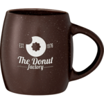 Cozy ceramic mug with a matte finish and trendy campfire pattern. Choose between color imprinting or our new cutting edge dishwasher safe laser decorating method (not available on the WH) 16oz.