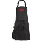 Grill bbq apron with insulated pocket. This apron keeps your BBQ tools within easy reach. Features an insulated pocket for keeping beverage bottles cold, a detachable bottle opener, padded oven mitt and towel loop as well as two front pockets to store other grilling essentials. . 600D Polyester, stainless steel and cotton.