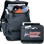 The ellevenâ„¢ Modular 15" Computer Backpack is the next generation of professional bags built for ultimate versatility and organization that adapts to your lifestyle. Unique modular pouch detaches to provide the necessities you need, right when you need them. Store your tablet, headphones and power bank for your next flight. Then simply detach the pouch and stash your bag in the overhead compartment. Designated laptop compartment holds up to a 15.6" laptop. Top zippered pocket for quick-access items. Wipe able bottom for easy cleaning. RFID protected side pocket. Padded adjustable shoulder straps with sternum strap. Rear trolley sleeve. ellevenâ„¢ branding elements and hardware. Free run charges for embroidery up to 7500 stitches. Disclaimer: There may be minor variations in color of the actual product due to the nature of the fabric dyes, weaves and printing.