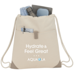 The Recycled Cotton Drawstring Bag is made from recycled 8 oz. cotton. Approximately 65% recycled pre-consumer cotton, 35% conventional cotton. This drawstring bag features deluxe cotton cords, a front slash pocket with hook and loop closure and a top grab handles. Through a partnership with 1% For The Planet, one percent of sales of this and all EcoSmart products will be donated to nonprofits dedicated to protecting the planet.