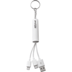 The Route Light Up 3-in-1 Charging Cable features a USB A tip, USB Type C tip, and a 2-in-1 dual compatible tip for both Apple® iOS and Android devices with 1A current. Not compatible with iPad Pro. It also comes with a key chain. This item must be lasered to reveal the light up function.