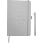 Set includes (2800-11) Nova Bound JournalBookâ„¢ and (6620-31) Ambassador Square Ballpoint. Faux, leather like hard cover journal with built-in elastic closure. Ribbon page marker. Expandable accordion pocket. Includes 96 sheets of lined white paper.