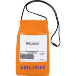 The Tradeshow Warrior Badge Holder Lanyard features a large main area with a drawstring closure. A clear PVC pocket on the front can display a badge or ID. Includes a break-away lanyard. Front window size: 4" H x 4.125" W.