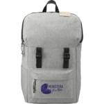 Merchant & Craft-simple classics for your modern lifestyle. The Merchant & Craft Revive Recycled 15" Computer Rucksack features RPET 600d material made from recycled water bottles. This backpack features a padded laptop sleeve that can hold up to a 15" laptop in the large, zippered main compartment. Keep your water bottle close by with the side water bottle pocket while keeping your mask and keys handy in the zippered front pocket. Carry in comfort with the padded, adjustable shoulder straps. Through a partnership with 1% For The Planet one percent of sales of this and all EcoSmart products will be donated to nonprofits dedicated to protecting the planet.
