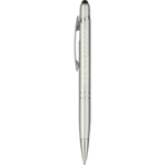 The Athen Ballpoint Stylus features a solid colored barrel with ring cut chrome accents. Click action mechanism with rubber stylus. Black ink cartridge.