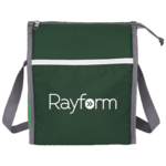The Color Block Lunch 9 Can Lunch Cooler features on-trend color-blocking, PEVA lining and a shoulder strap with clip. Each colorway has a different shade color on the sides. Black has Gray sides, Hunter Green has Lime and Navy has Royal. This cooler features an interior ID label.