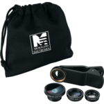 The 3-in-1 Clip-on Phone Lens Set (180° Fisheye Lens + Wide Angle lens + Macro lens) includes a lens pouch and top-grade aluminum clip. Clamp the lens clip, with the desired lens, over your mobile device camera lens and you're set to take a variety of fabulous photos. Use Macro lens to take clear photos of small objects (very) close up; use the wide-angle lens to capture a fuller view of scenery; and to get 180-degrees of scenery with a different perspective, use the fisheye lens. The included microfiber carrying pouch is convenient for holding the lenses and it also makes a good cleaning cloth for wiping off dust or fingerprints.